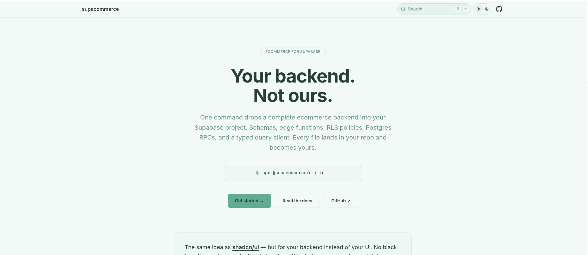 A modern headless e-commerce solution built with on Supabase that you drop into your project and make it your own.